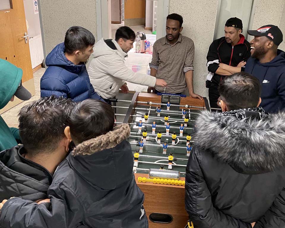 Es herrscht ein reger Austausch an Informationen, es werden Spiele gespielt, Formulare übersetzt und erklärt, Termine zu Veranstaltungen „nach draußen“ getätigt, und sonstige Kontakte geknüpft.