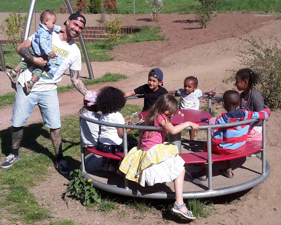 Im Freitagscafé treffen sich GU-Bewohner verschiedenster Herkunft, Frauen, Männer wie auch immer viele Kinder mit ehemaligen Bewohnern und eingeladenen, interessierten Gästen aus der Bevölkerung Aschaffenburgs und Umgebung.