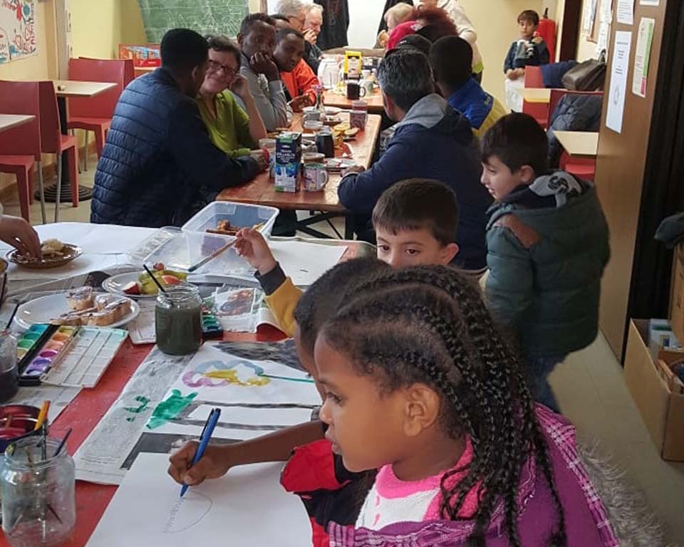Für Menschen, die sich ehrenamtlich engagieren möchten, bietet das Freitagscafé eine Möglichkeit, zunächst unverbindlich in Kontakt mit Geflüchteten zu kommen.